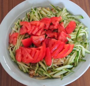 ⑤ きゅうりとレタスを混ぜ合わせ、できあがりです。