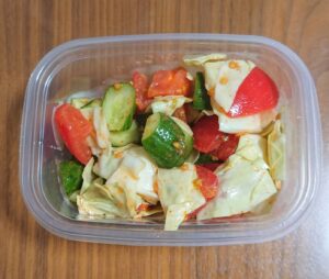 トマトキムチの素を使いましたが、きゅうりやきゃべつも一緒に漬け込んでちょうどいい塩加減となりました。