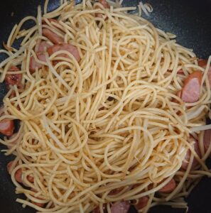 ④ フライパンでウインナーに軽く焦げ目が付く程度まで炒めます。