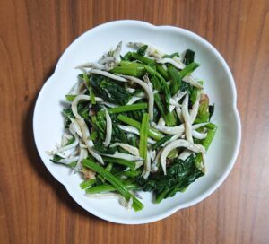 ① ほうれん草を湯がき、食べやすい大きさに切ります。